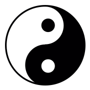 The circle represents the Tai Chi containing the moving Yin (dark) and Yang (light). The Yang part contains within it a small amount of Yin and the Yin part contains within it a small amount of Yang.